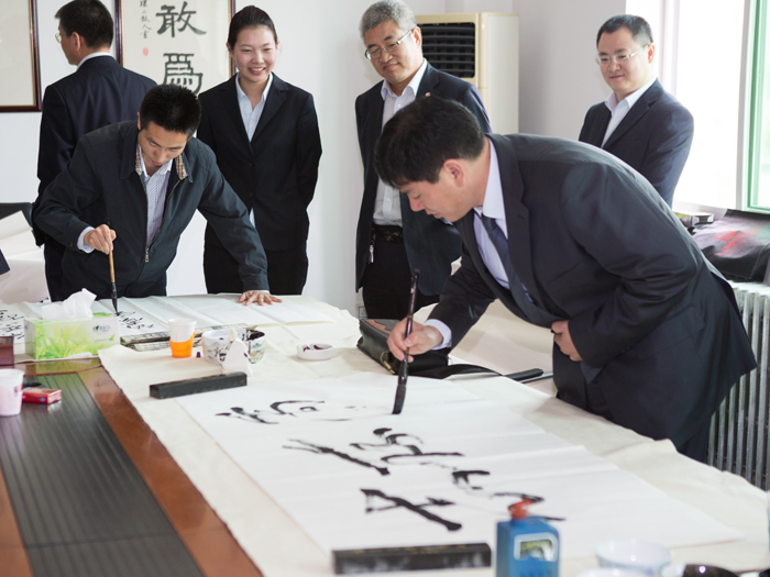 为弘扬传统文化,丰富员工业余生活,5月6日上午,好博最新网页登录有限公司举办了首届书画艺术学习交流活动。本次活动邀请了中国书法家协会会员孟云飞博士、中国书法家协会理事张铜彦先生、中国书法家协会编辑出版委员会副主任王荣生教授、人民艺术家协会理事于瑛先生等国内知名书画大师,各位书画大师在活动现场进行了艺术创作表演,挥毫泼墨,交流技艺,为好博最新网页登录有限公司留下了数十副墨宝,还对部分员工的书画作品进行了悉心指导。公司员工现场欣赏了书画大师的艺术创作,并聆听了有关书画艺术鉴赏知识的介绍,部分员工还在活动现场进行创作,听取书画大师的讲解示范和点评。