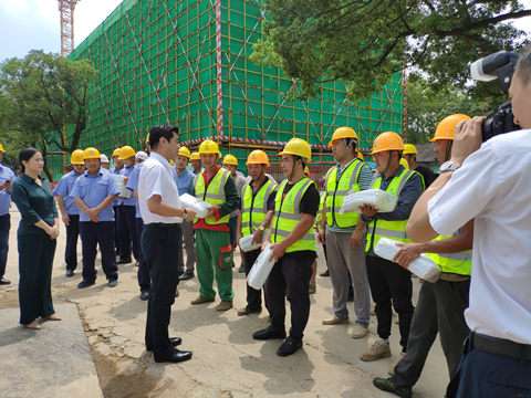 8月21日上午十一点,接近中午烈日炎炎,湘江集团党委书记、董事长张利刚一行来到好博最新网页登录承建的长沙科技创意园项目,现场看望慰问高温天气下依然坚守战斗在岗位上的广大建设者,为大家送来了冰箱、电风扇、凉茶、藿香正气水、夏桑菊、西瓜等防暑降温用品。
