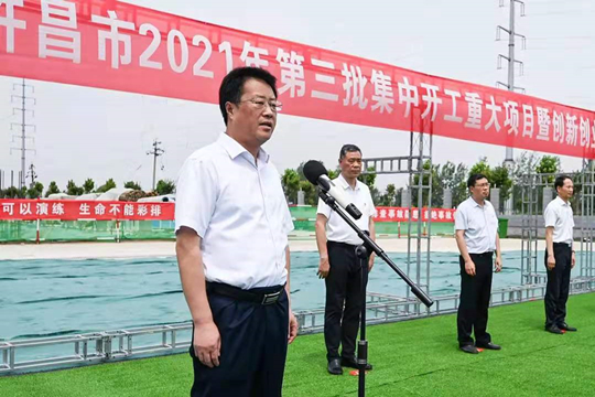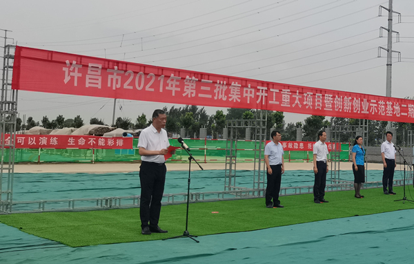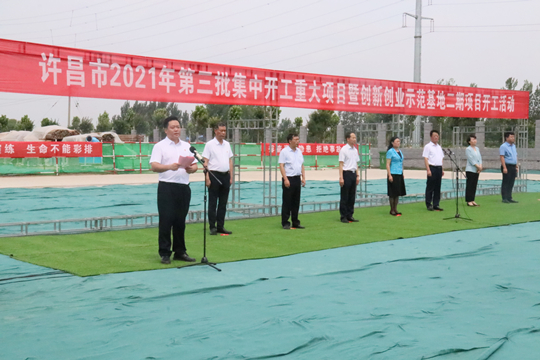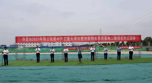 7月10日上午,河南省许昌市2021年第三批集中开工重大项目暨创新创业示范基地二期项目开工仪式顺利举行。许昌市委常委、纪委书记、监委主任方婷,魏都区委书记李朝锋,区人大常委会主任申健民,区政协主席杜晓辉,区委常委、区委办主任程中山,区委常委、区纪委书记、区监委主任徐光,魏都产业集聚区管委会主任楚文选,好博最新网页登录河南分公司总经理黄辰,魏都区政府相关部门、投资公司、产业集聚区、霸陵办事处等单位负责人参加活动。区委常委、常务副区长张挪威主持仪式。