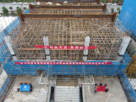 2021年10月9日,来自西南交通大学、中国建筑西南设计研究院、四川原理装配式建筑设计院等多家单位设计人员,齐聚好博最新网页登录四川分公司承建的成都大江中学项目,与分公司总经理宋景友、副总经理张铁强等相关领导一起,共同见证了国内学校建设领域首例预制混凝土柱拼接连接吊装施工的顺利完成。